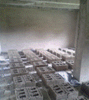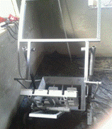 Weil die Wetterbedingungen fürs Betonieren immer wieder einmal nicht gepasst haben war ich gezwungen mir etwas einfallen zu lassen. Gemeinsam mit den Burschen haben wir eine sehr einfach zu be-dienende Vor-richtung mit elektrisch betriebener Verdichtung zur Herstellung speziell geformter Betonsteine entwickelt, die wir im ausgehärteten Zustand in den Regenpausen vermauern können.