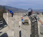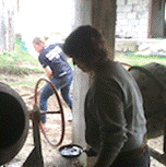 Weil wir nun leider doch nur eine recht kleine Gruppe waren und ich ja den beiden Damen nicht alle Arten von Tätigkeiten zumuten konnte, musste ich mich wohl oder übel von meinen Vorstellungen, was während des Bau-Camps erreicht werden könnte, verab-schieden. Um die Zeit möglichst gut zu nützen haben wir abwechselnd mit Holz, Beton und Stahl gearbeitet wobei das Schweißen für alle sicher am interessantesten war, denn diese Arbeit hatten sie bisher alle noch nicht gemacht. Laut Aussage aller habe ich das Verfahren richtig gut erklärt, so dass es bei fast allen auf Anhieb klappte den Schweißapparat richtig zu bedienen.