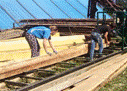 Weil es zunächst wochenlang immer wieder geregnet und sogar noch ge-schneit hat, haben wir uns zunächst auf das Verputzen der Innenwände konzentriert und jene Räume fertig-gestellt, die für die Mitarbeiter des Bauordens, die ab dem 4. August für zwei Wochen mitarbeiten sollten, als Quartier vorgesehen waren. Parallel, in den Regenpausen haben wir noch restliches Bauholz geschlägert und mit der zuletzt neu angeschafften Bandsäge zu Brettern, Balken und Dachlatten zugeschnitten.
