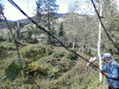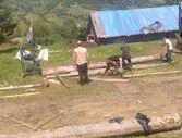 Weil es zunächst wochenlang immer wieder geregnet und sogar noch ge-schneit hat, haben wir uns zunächst auf das Verputzen der Innenwände konzentriert und jene Räume fertig-gestellt, die für die Mitarbeiter des Bauordens, die ab dem 4. August für zwei Wochen mitarbeiten sollten, als Quartier vorgesehen waren. Parallel, in den Regenpausen haben wir noch restliches Bauholz geschlägert und mit der zuletzt neu angeschafften Bandsäge zu Brettern, Balken und Dachlatten zugeschnitten.
