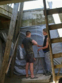 Da rasch abzusehen war, dass die Arbeiten mit diesem Team – trotz bestem Willen aller – aufgrund von mangelndem Fachwissen und auch praktischer Erfahrung letztlich nur langsam vorangehen würde habe ich nach Rücksprache mit Werner Killmeyer die Chance genützt zwei – überraschend verfügbare – erfahrene Handwerker zur Unterstützung einzustellen. Diese waren anfangs sehr verwundert zwei junge Damen als Mitarbeiter auf der Baustelle vorzufinden und haben zunächst immer versucht die beiden von körperlich anstrengenden Arbeiten abzuhalten. Die Mädels haben sich aber davon nicht wirklich beein-drucken lassen und fleißig weitergearbeitet. Mit ihrem großen Engagement haben sie zu einem äußerst positiven Arbeits-klima beigetragen und wurden von uns allen sehr bewundert. Entsprechend schwergefallen ist uns der Abschied von den beiden. Mit ihrem Fachwissen hinsichtlich architektonischer und statischer Belange waren sie für mich wertvolle Gesprächspartner die mich in meinen Plänen und Vorgehensweisen bestätigt haben.